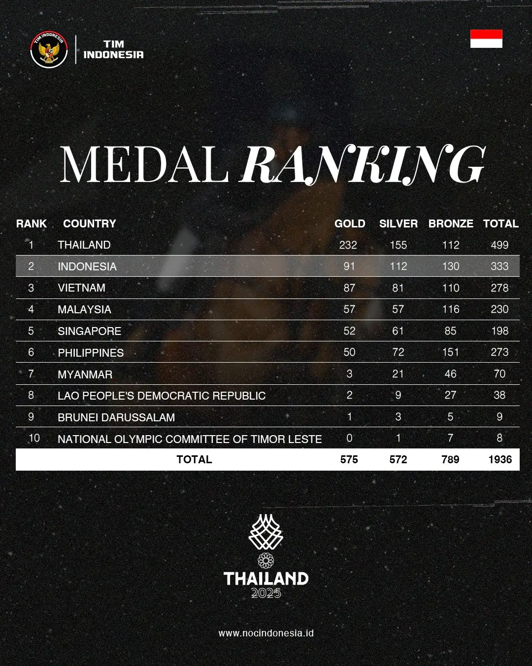 Raihan di Thailand juga menjadi catatan tertinggi Indonesia di luar kandang sejak menjadi juara umum pada SEA Games 2011 ketika berstatus tuan rumah.
