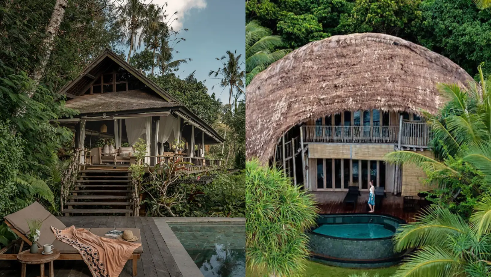 Terletak di Buahan Kaja, Bali, Banyan Tree Hotels & Resorts menawarkan pengalaman menginap yang menyatu dengan alam di tengah rimbunnya hutan Bali. Keunikannya terletak pada desain kamar yang berupa paviliun terbuka dengan lantai kayu, pilar kayu, serta atap berkubah. Vila-vila ini tidak memiliki dinding permanen, melainkan hanya dilengkapi tirai tipis untuk menjaga privasi dan tirai bambu yang dapat digunakan saat hujan turun.
