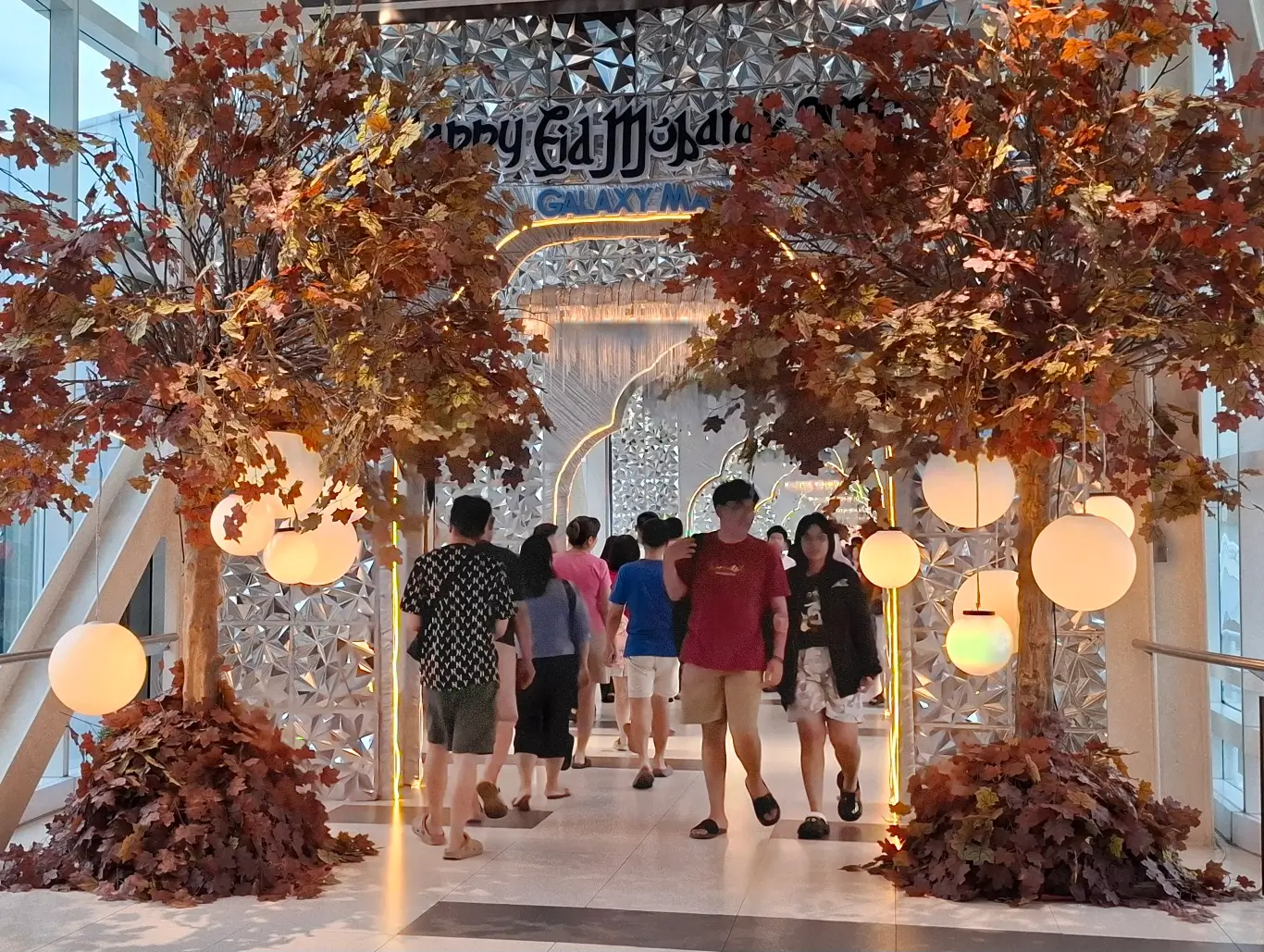Tak hanya itu, sejumlah sudut dekorasi di dalam mal juga menjadi daya tarik tersendiri bagi pengunjung. Salah satunya adalah lorong eskalator di Galaxy Mall 1, tepatnya di dekat gerai Häagen-Dazs, yang viral karena dihiasi tanaman hijau, lampu-lampu, serta deretan chandelier cantik. Selain itu, dekorasi khas Lebaran juga dapat ditemui di area jembatan penghubung antara Galaxy Mall 1 dan 2 dengan Galaxy Mall 3.