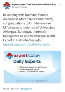 Tweet Expertscape terkait dr Miftah. (Foto: dok. Unair)