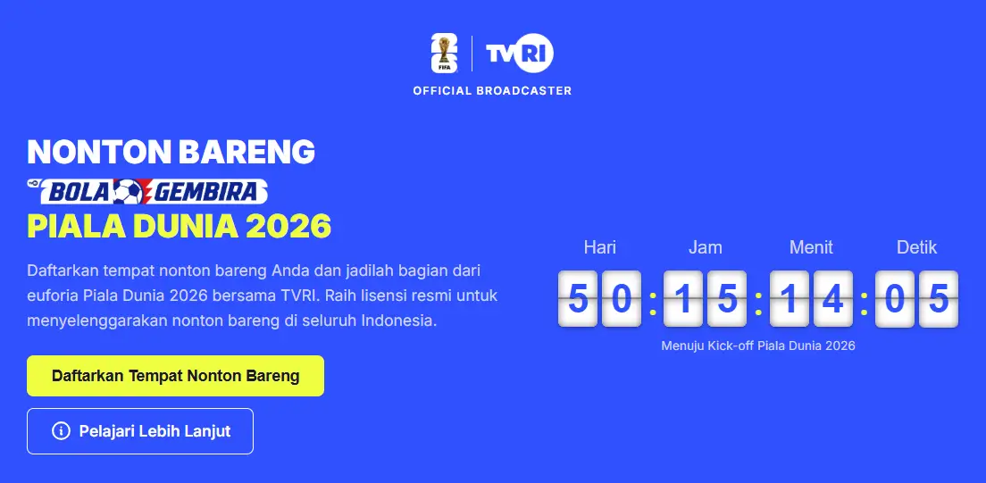 Kemudian pendaftar perlu mengisi detail lokasi nobar, memilih jenis lisensi, dan melakukan pembayaran (untuk kategori komersial). Setelah proses aktivasi selesai, lokasi tersebut resmi menjadi bagian dari jaringan nobar Piala Dunia 2026 di seluruh Indonesia.